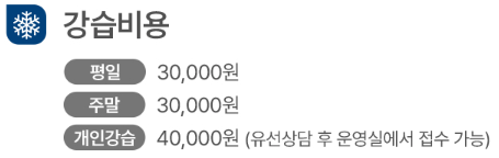 ※ 토요일 강습권 구매 시 토,일요일 2일 동안 강습 진행 됩니다.