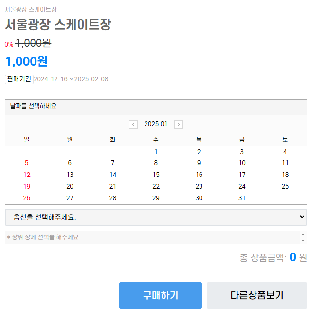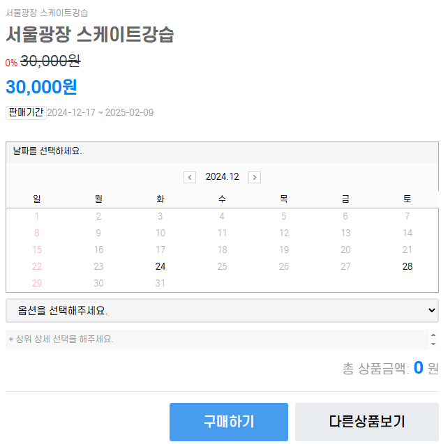 - 12월 24일 (1/07 평일 강습권 옵션 오픈)