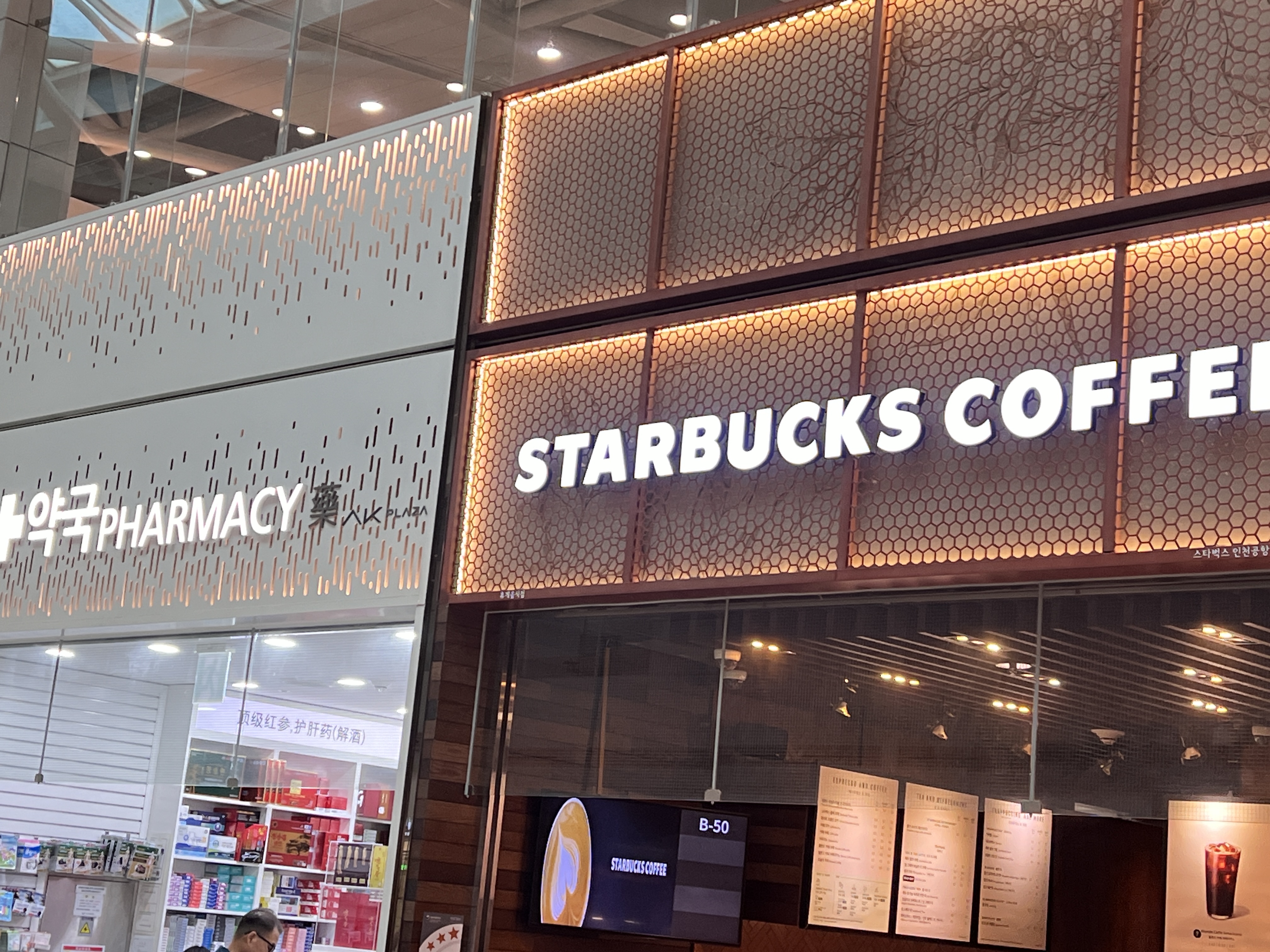 그 이후 스타벅스나 KAL 라운지를 보시면 옆에 약국이 있습니다. 약국 위치 확인하시고 급작스런 고통에서 벗어나시길 바랍니다. 저의 부모님중 아빠가 갑작스런 복통으로 인하여 약국이 필요했던 기억이 있어서 이렇게 글을 올려봅니다.